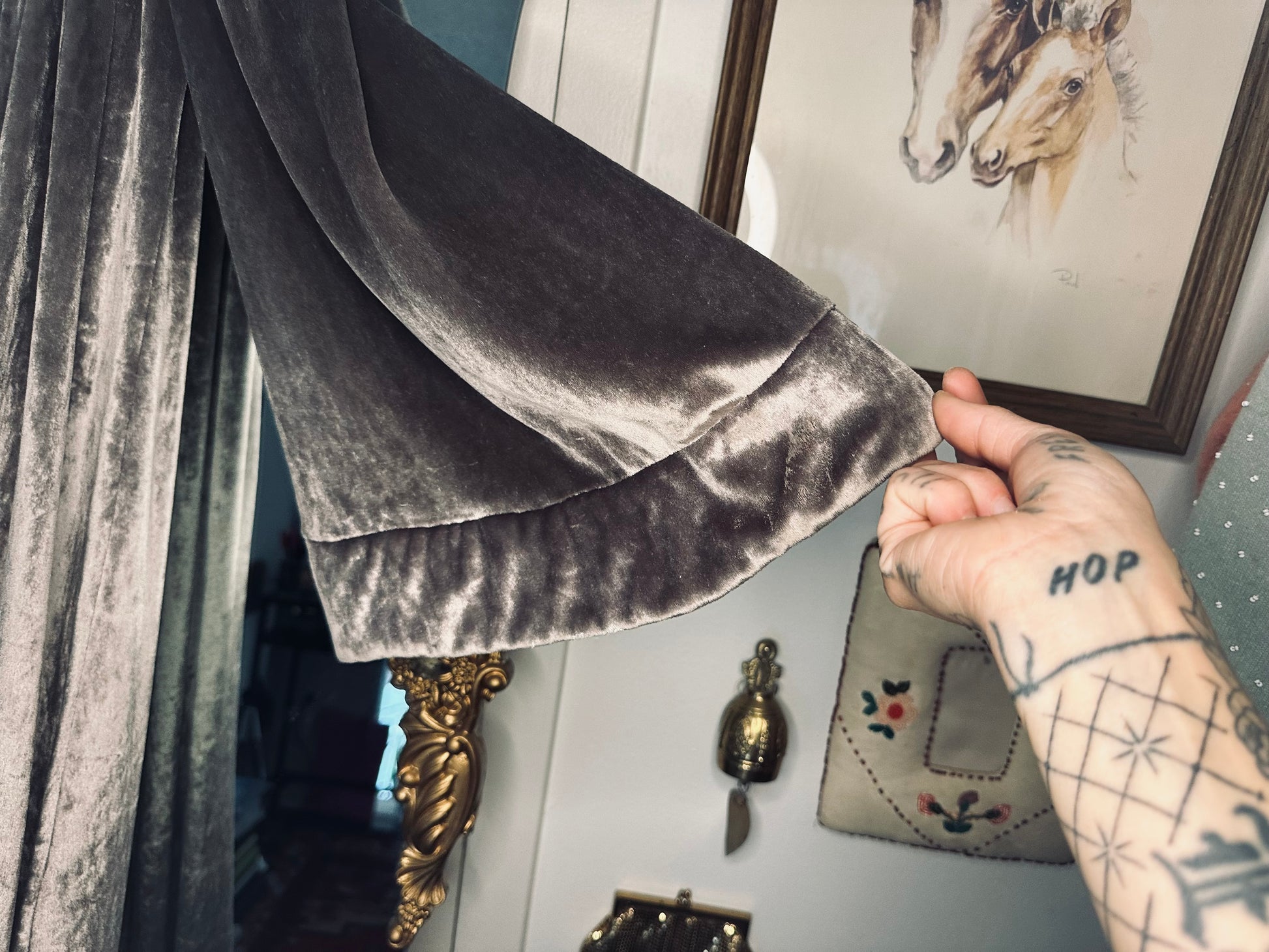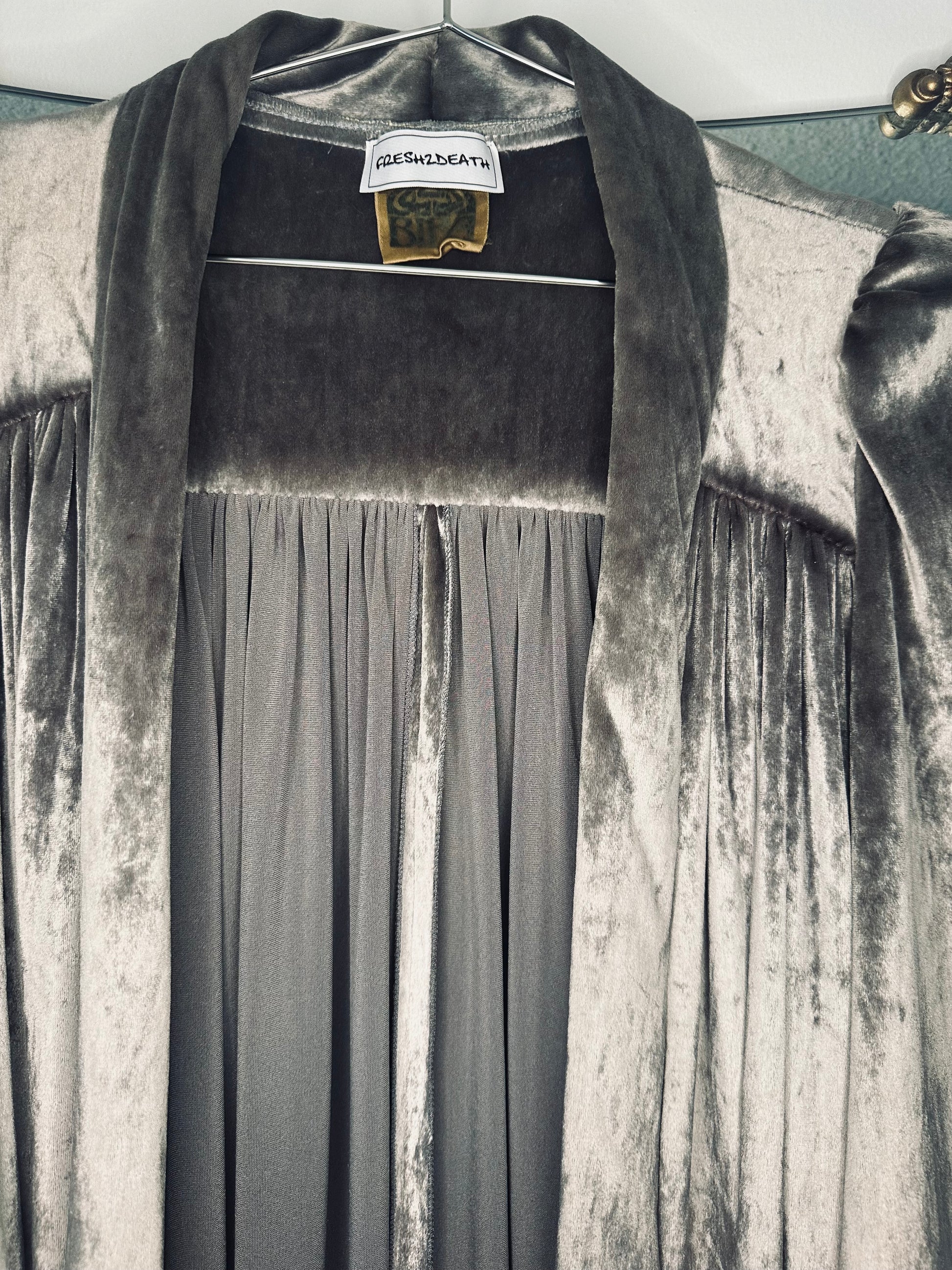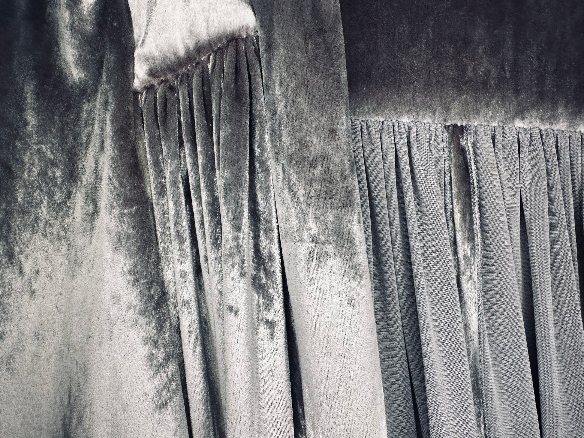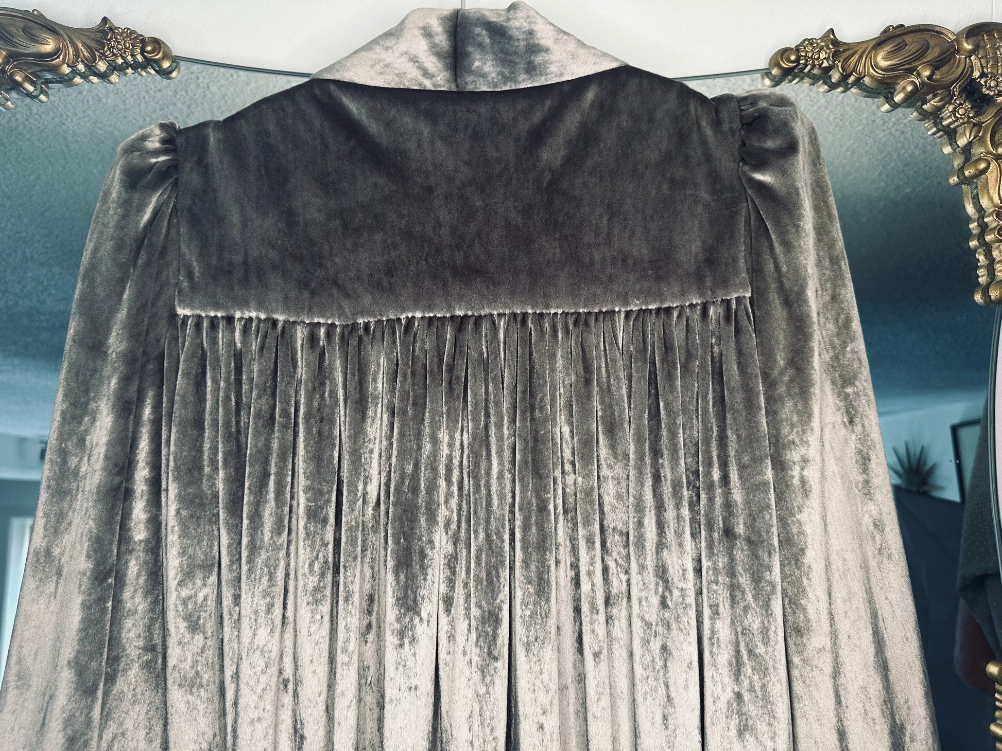 it is hand sown {you can tell} & has pleated detailing & wide belled sleeves.