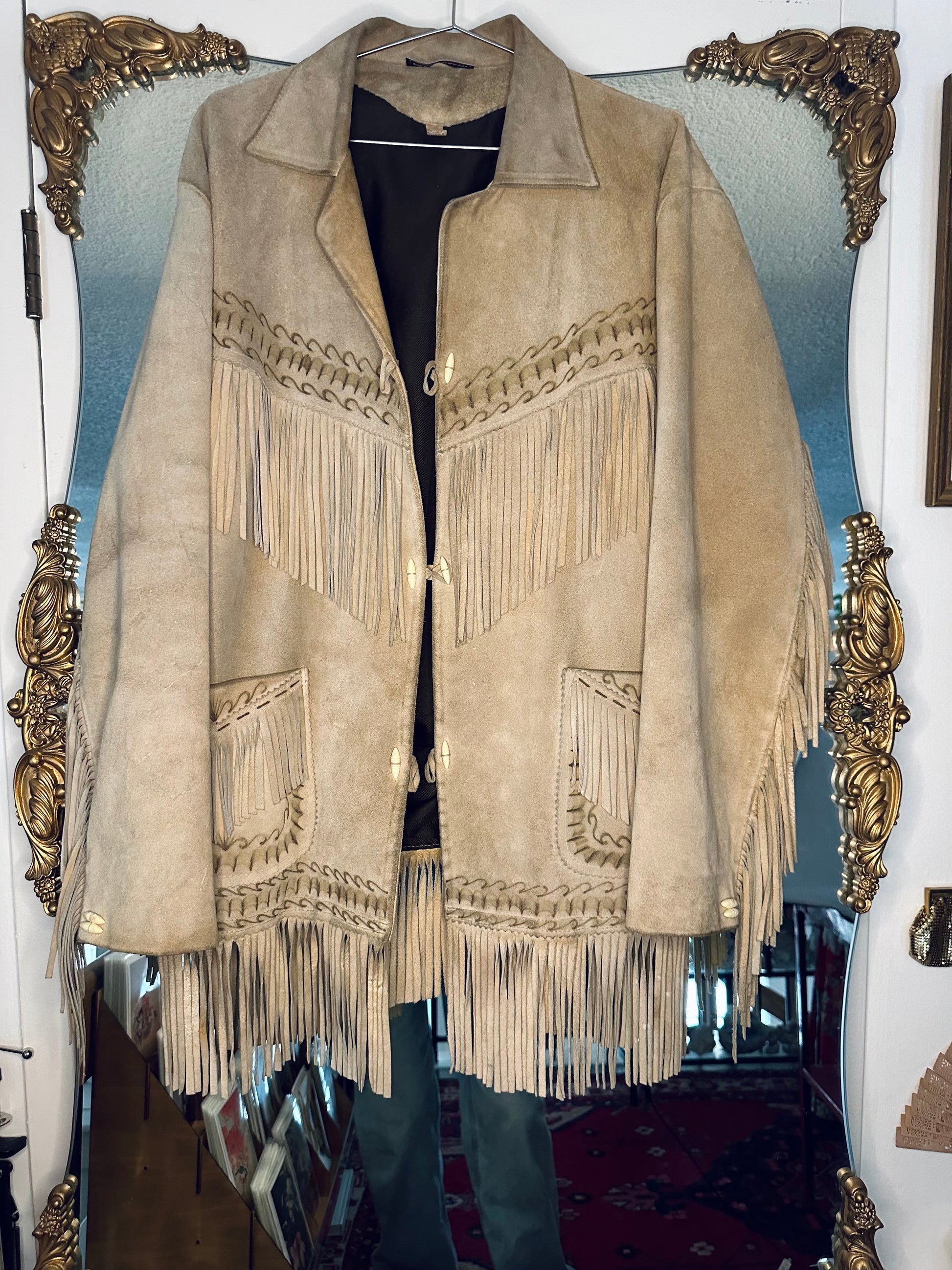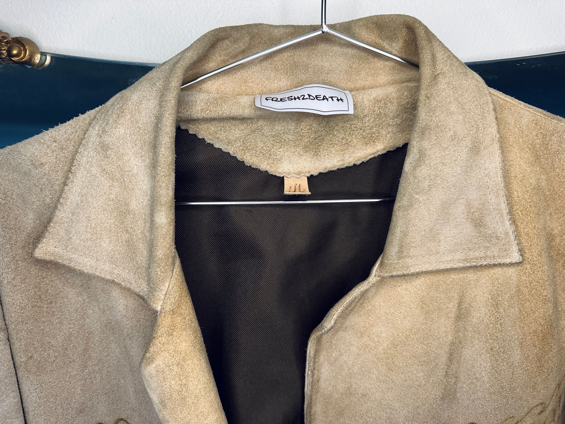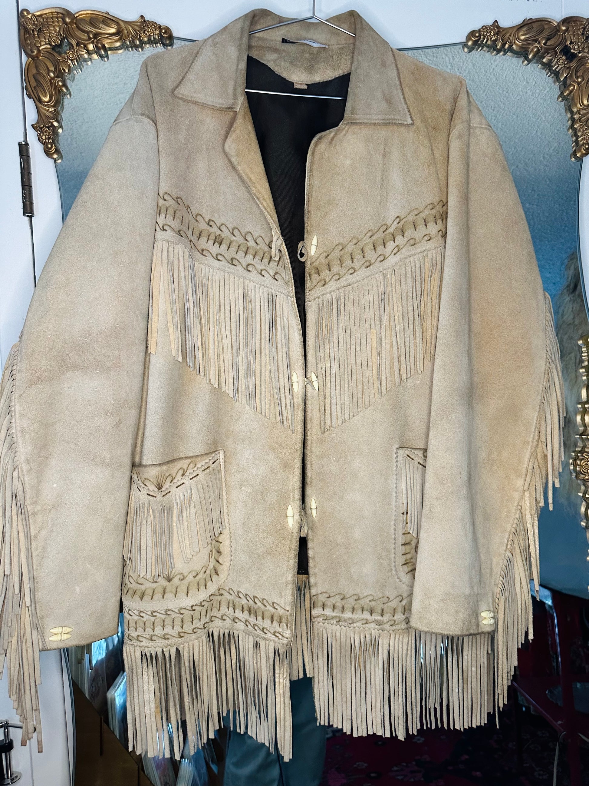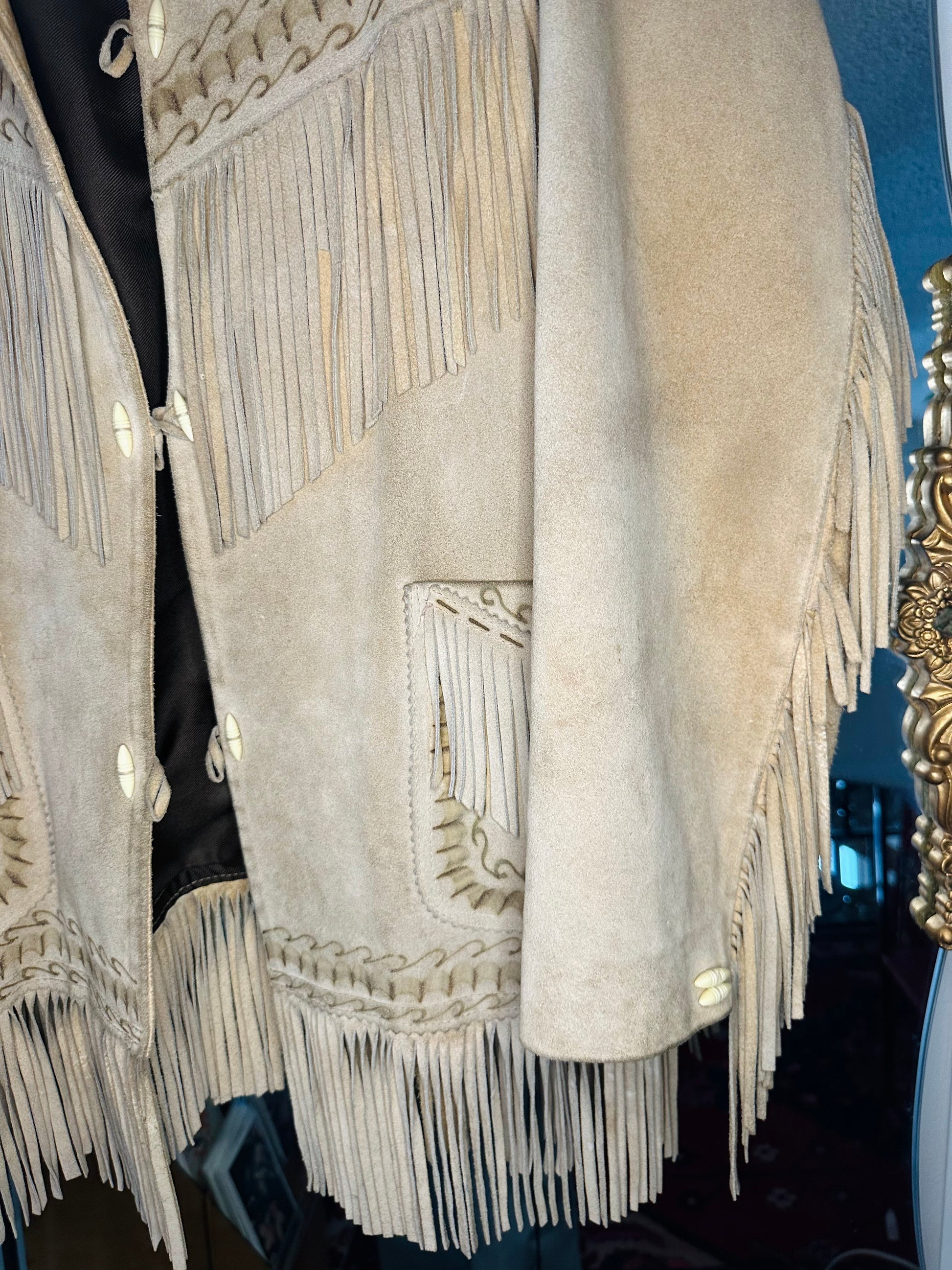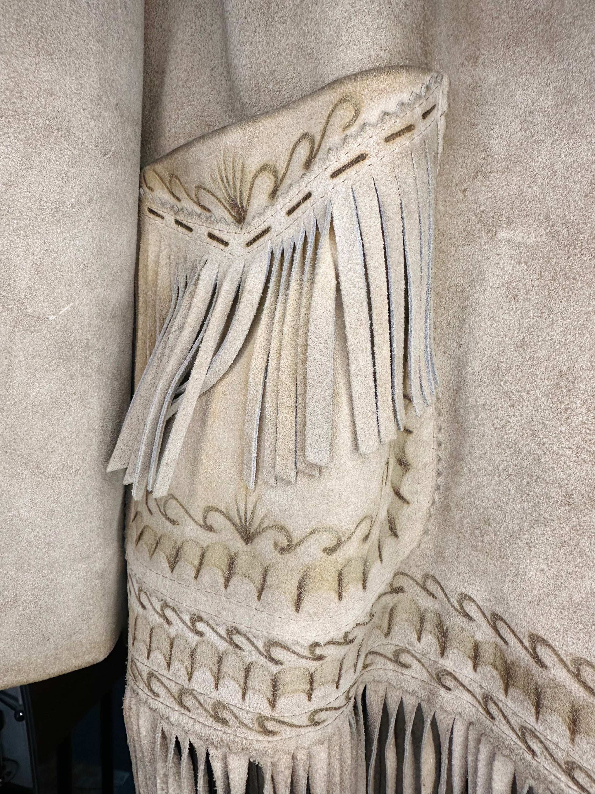 this garment is a lighter camel suede.