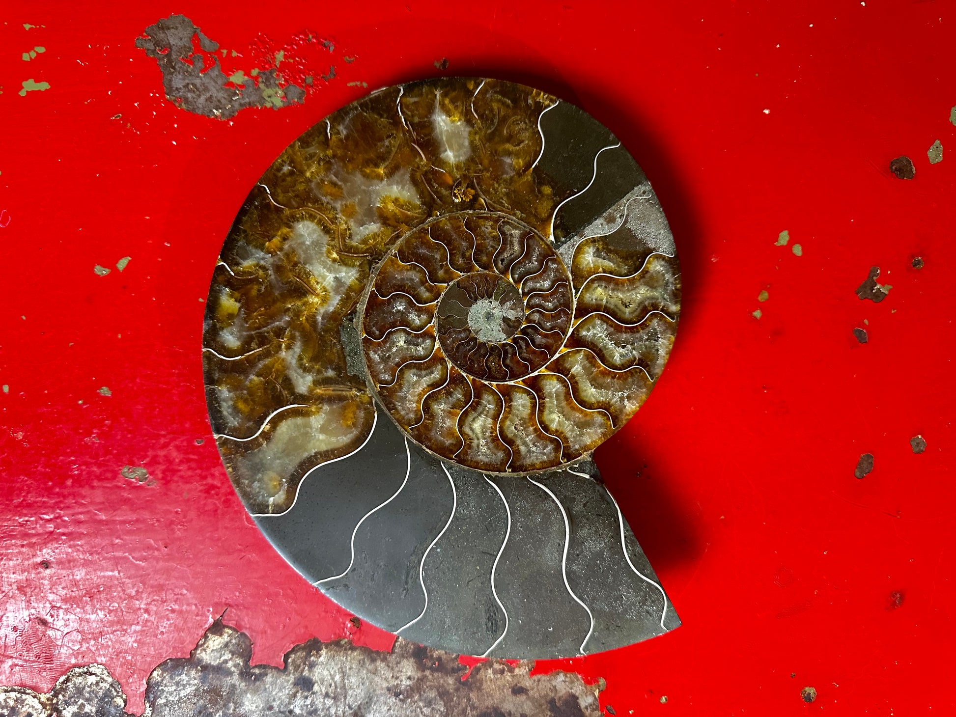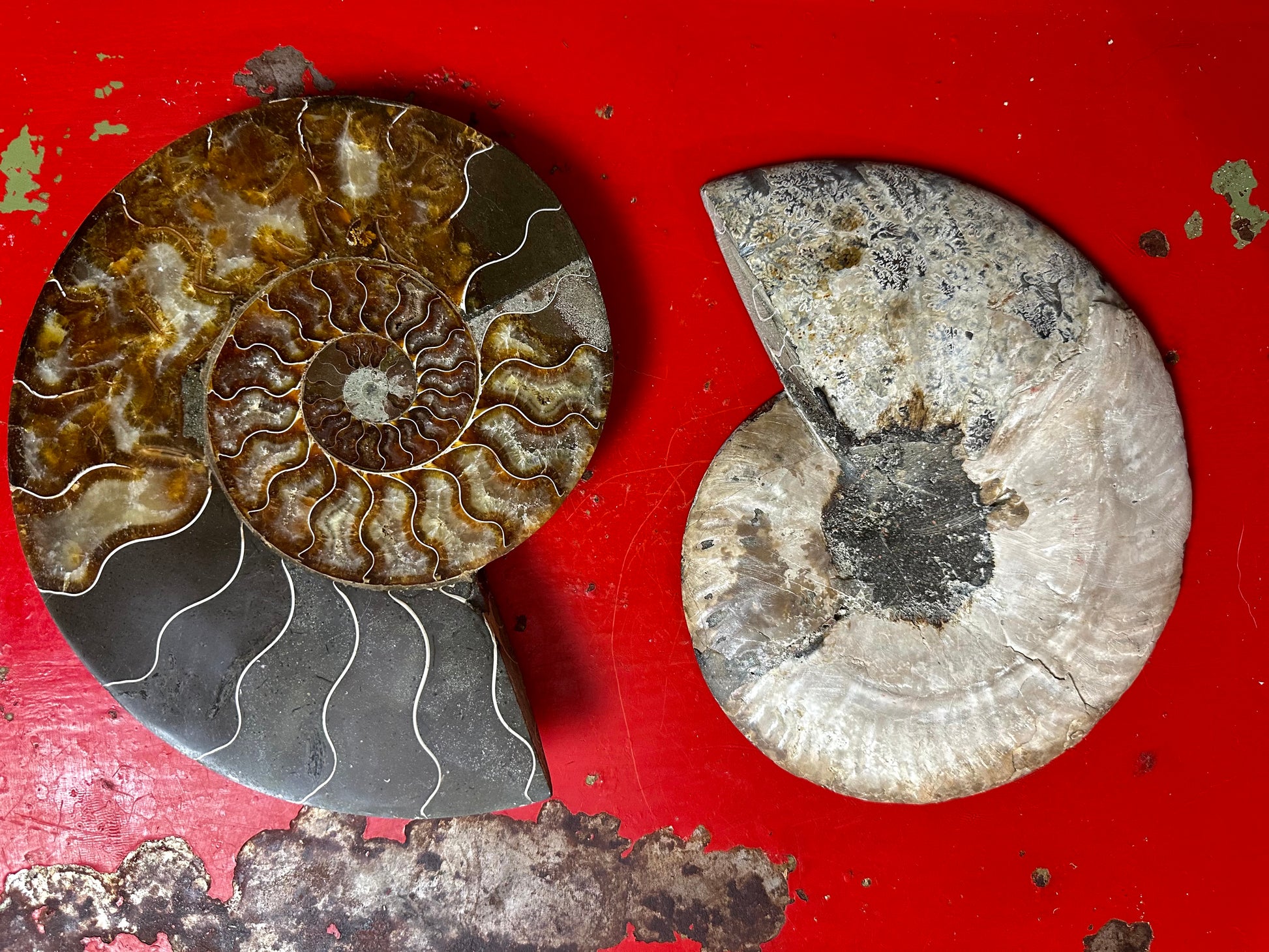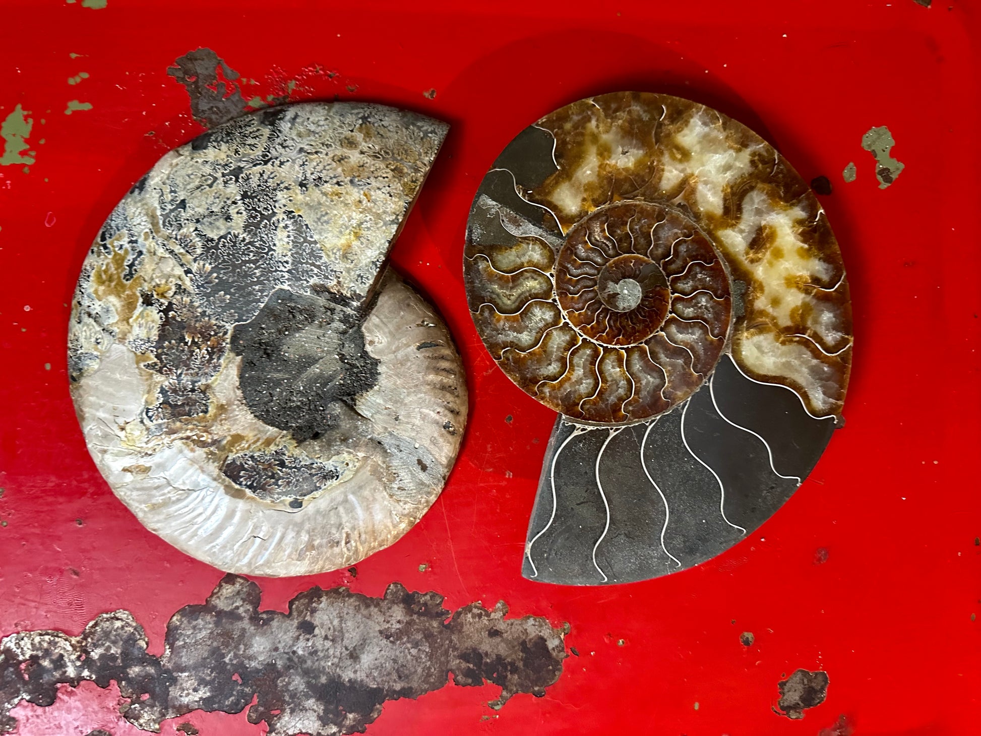 Ammonites were free swimming mollusks of the ancient oceans, living around the same time that the dinosaurs roamed the earth.