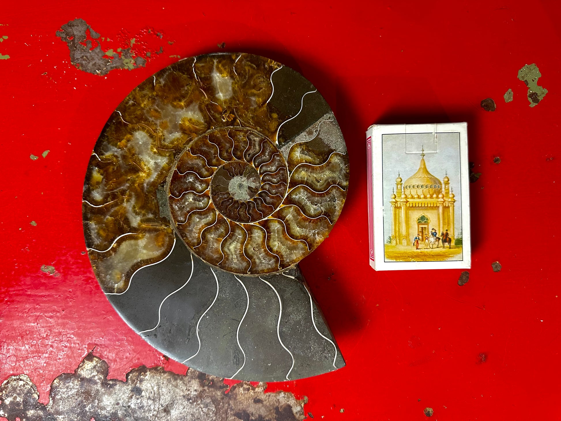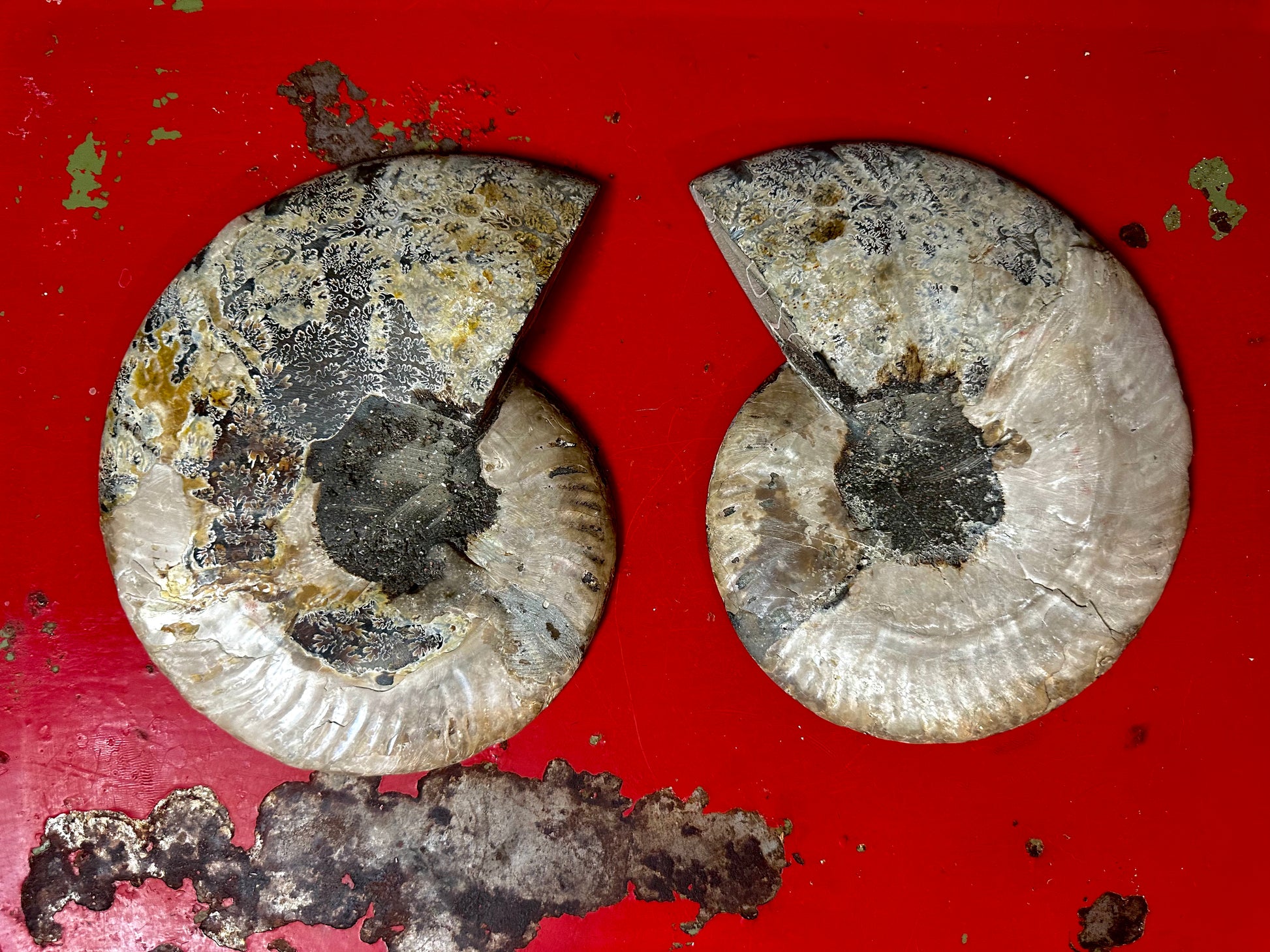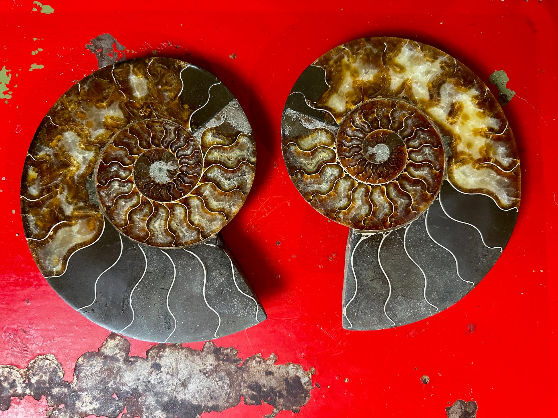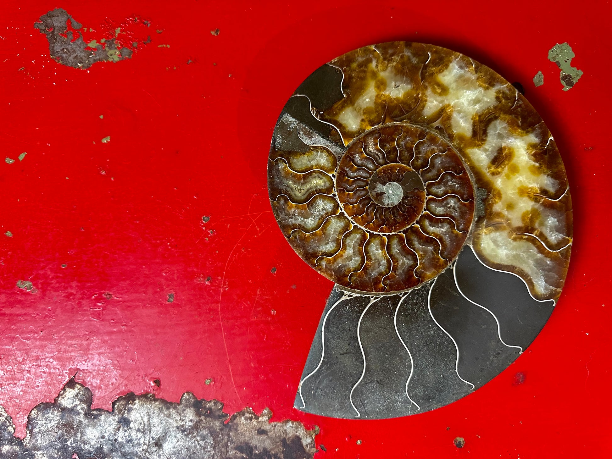 Ammonites were free swimming mollusks of the ancient oceans, living around the same time that the dinosaurs roamed the earth.