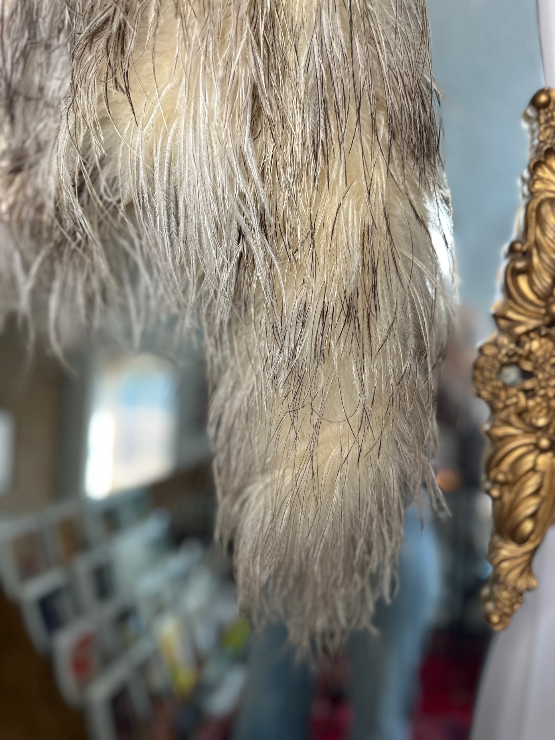 ostrich feathers are on ombré, crème, grey, taupe hue level 5 thouLZzand.