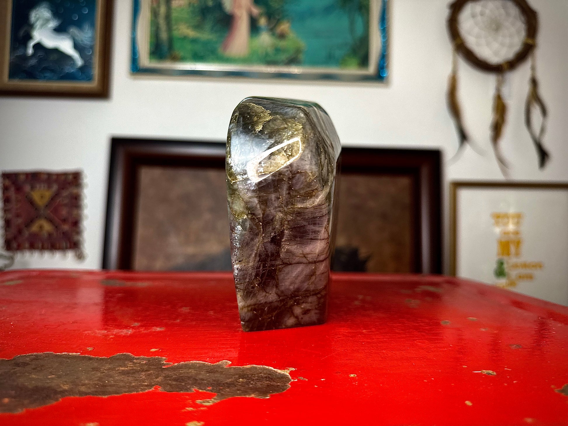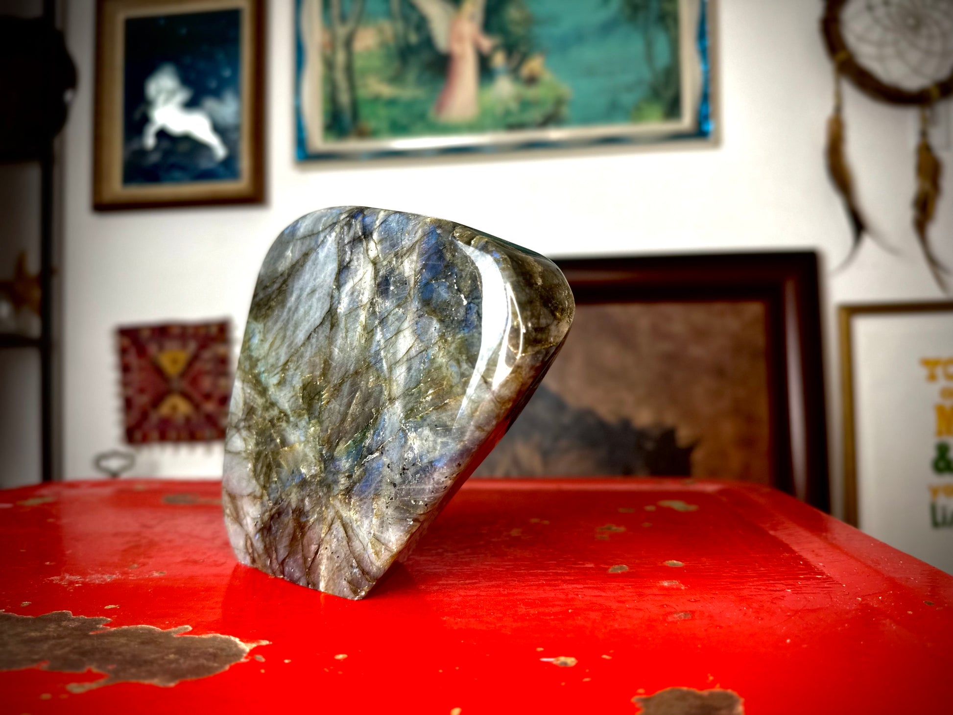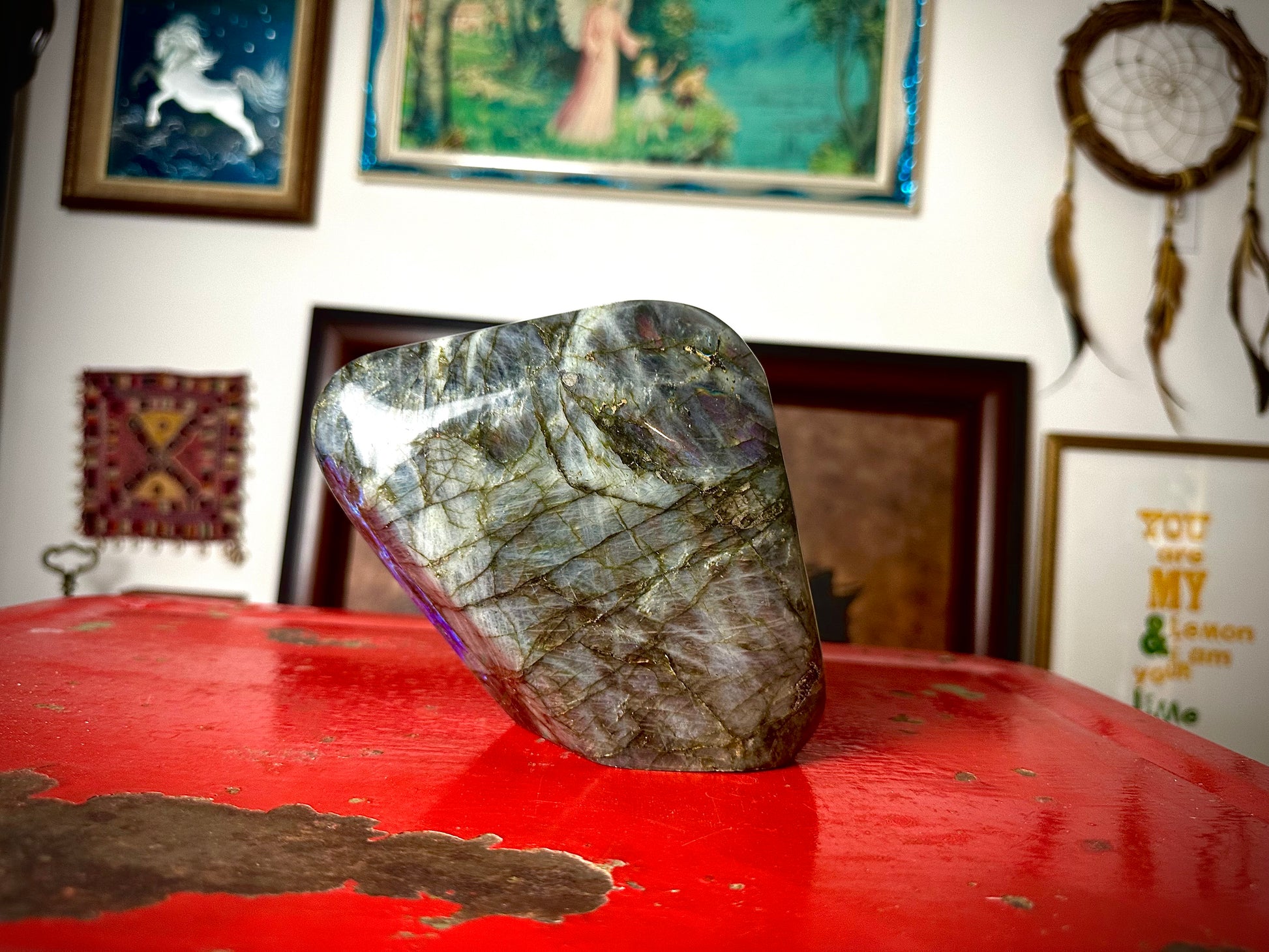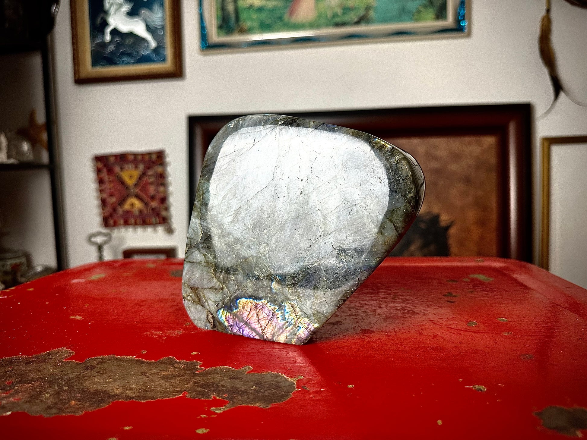 Labradorite is a stone of transformation and change, lifting moods and promoting personal growth. Also one of protection, absorbing negative energies from the environment. It can provide clarity in decision making, especially in cases where you are seeking direction from the spiritual realm.