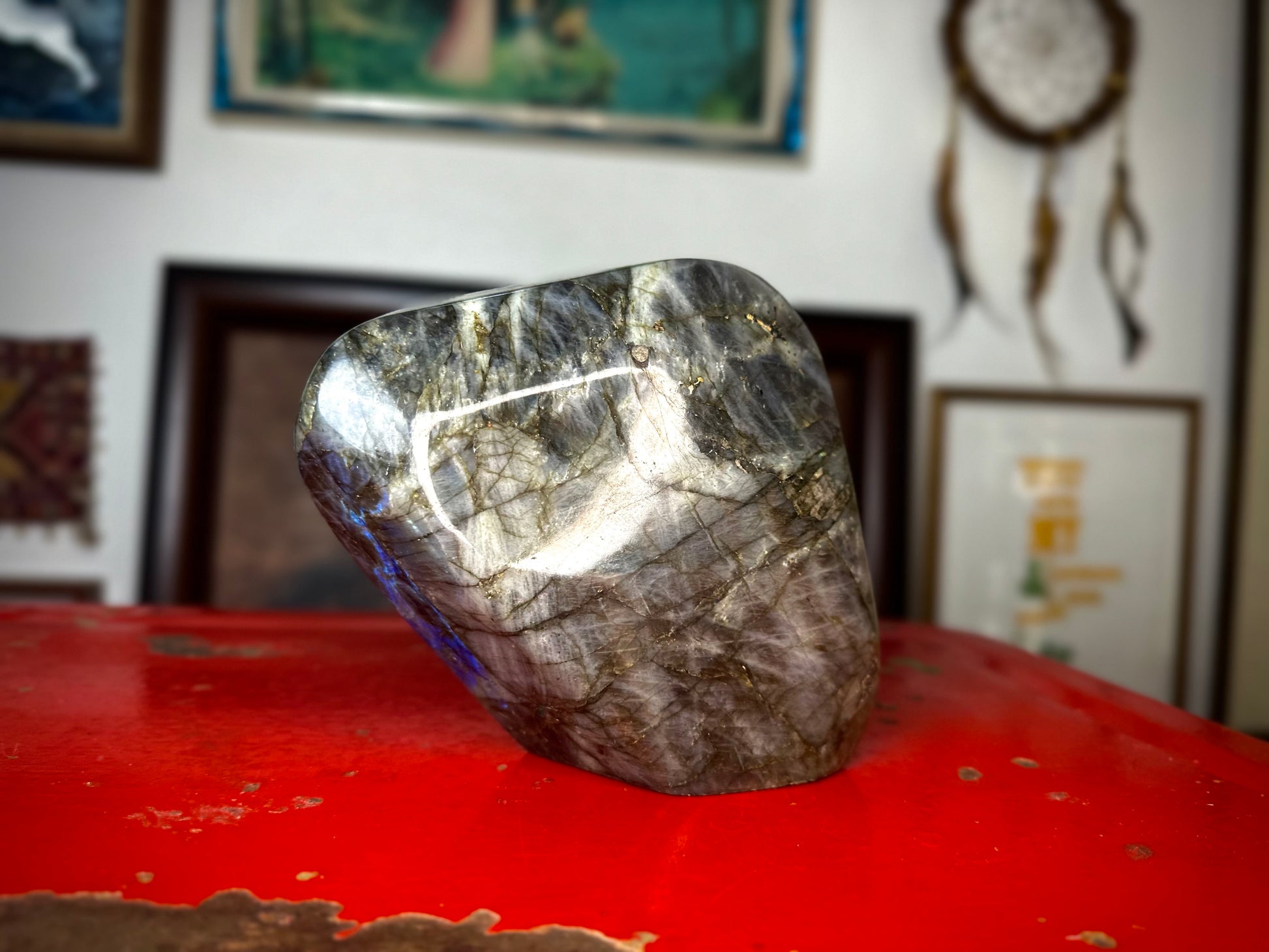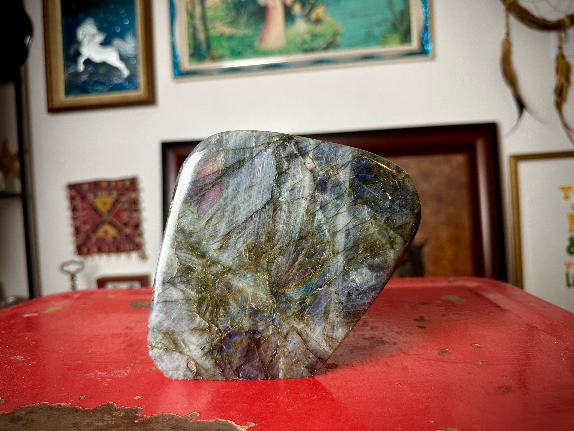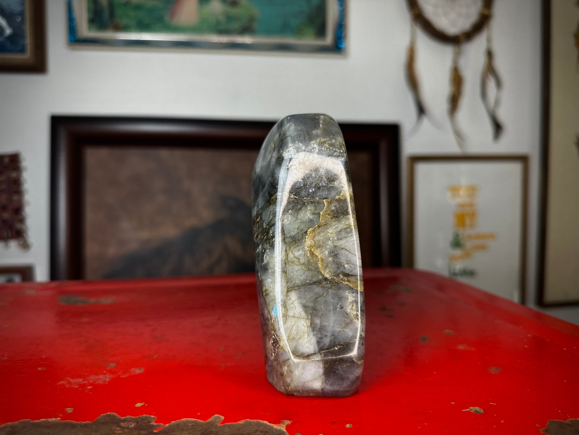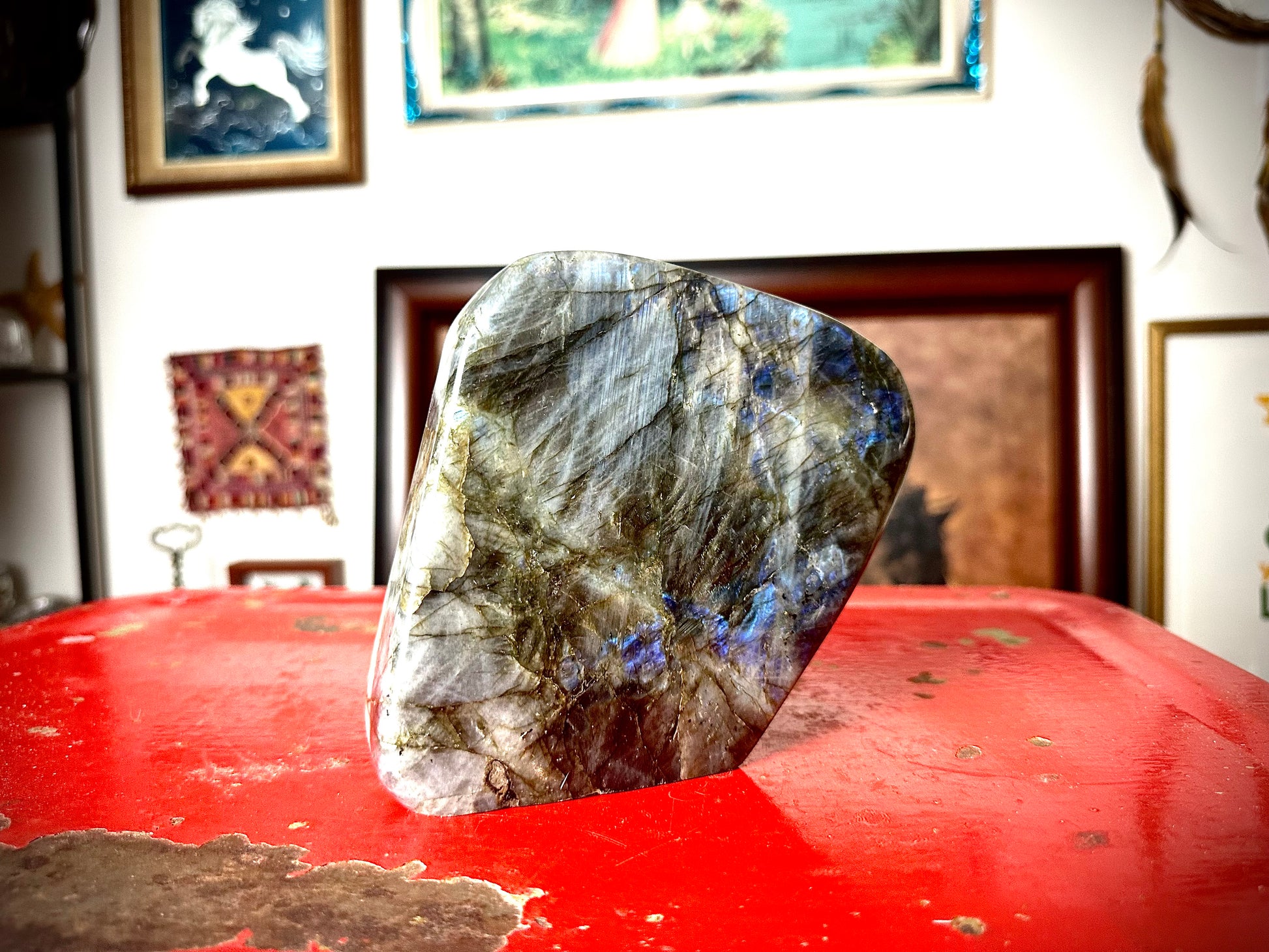 Labradorite is a stone of transformation and change, lifting moods and promoting personal growth. Also one of protection, absorbing negative energies from the environment. It can provide clarity in decision making, especially in cases where you are seeking direction from the spiritual realm.