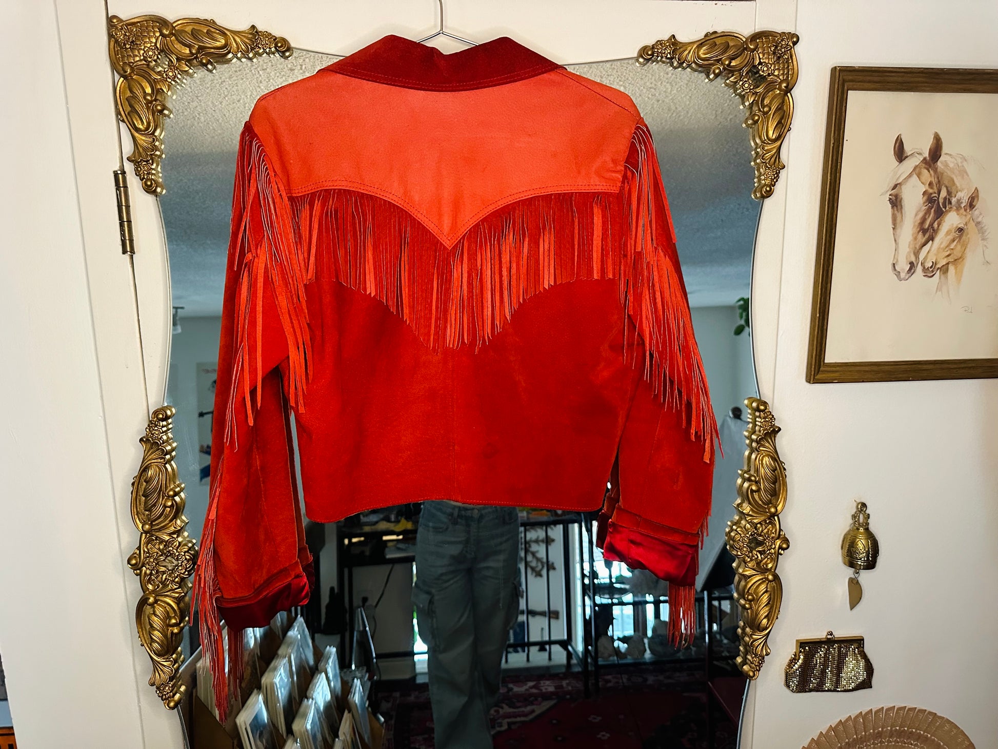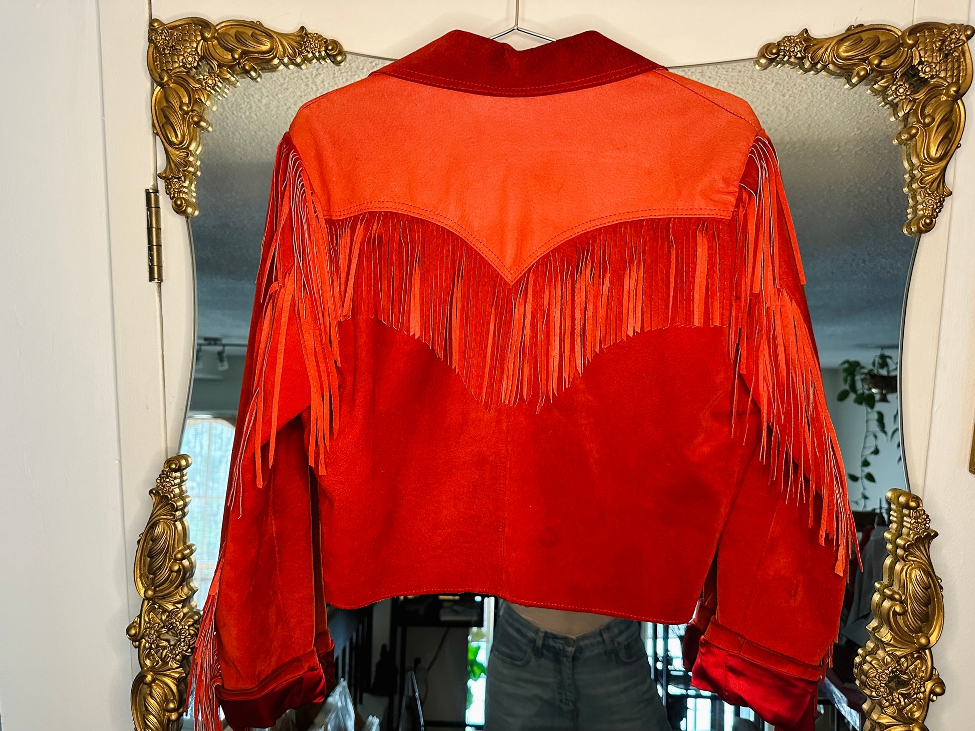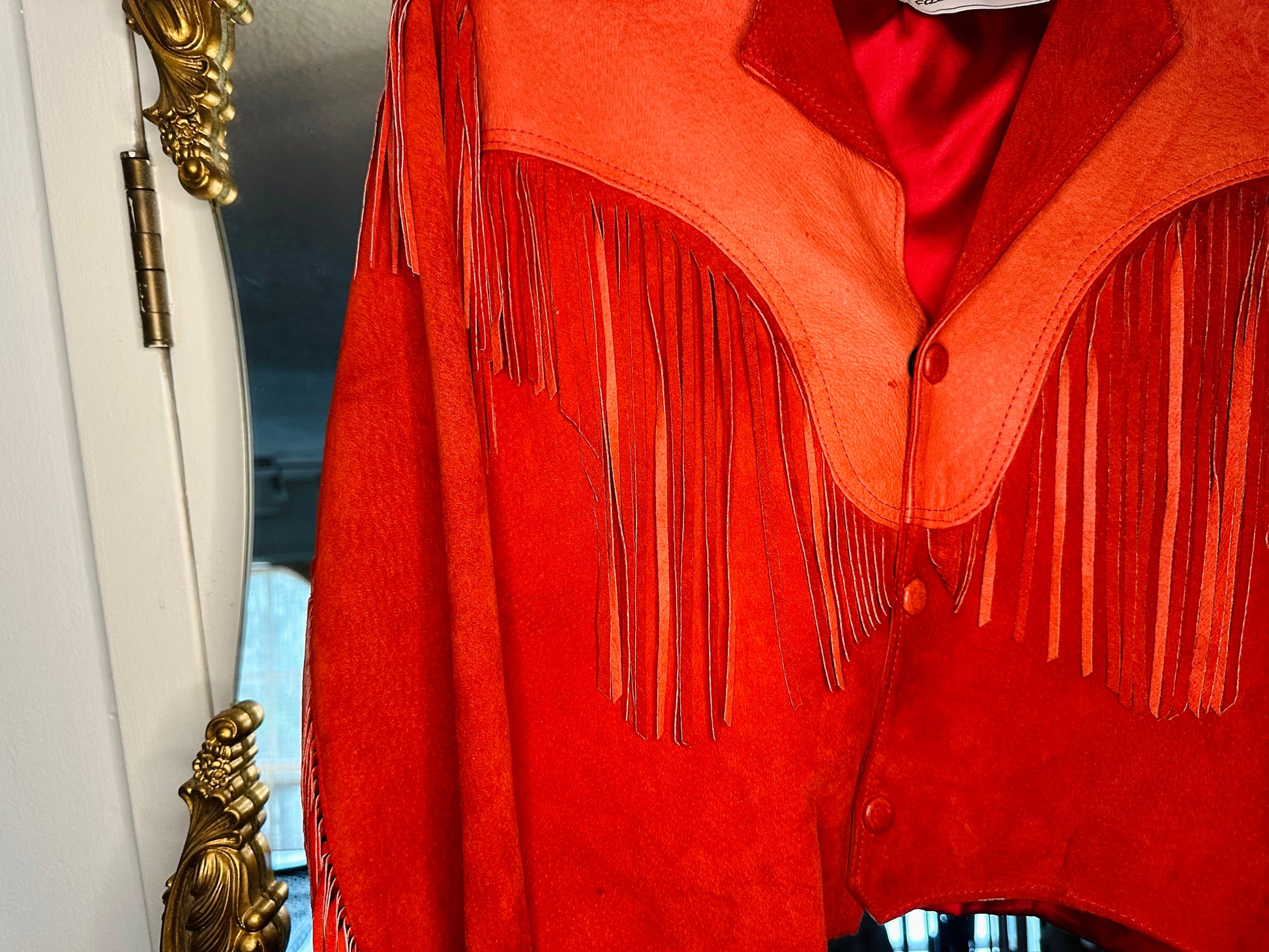 leather is then fully trimmed all along its edge with nubuck suede fringe. {there is some varying length on the fringe ~ part of its design}