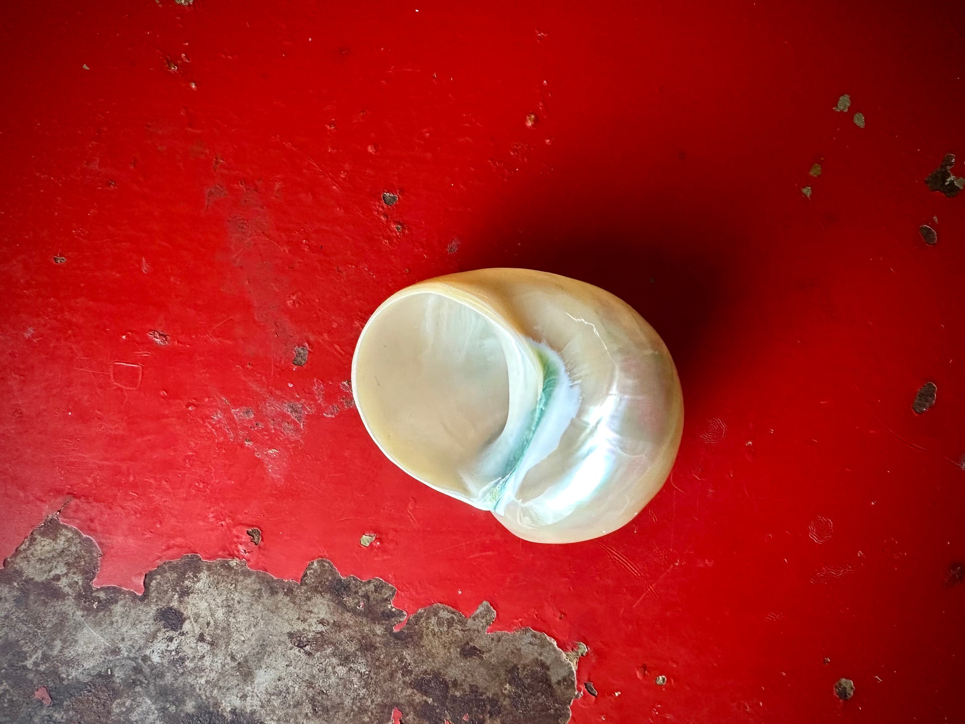lacǫuered & sanded down to the prismatic glow that is in fact the true essence & base of this shelly shell SHELL!