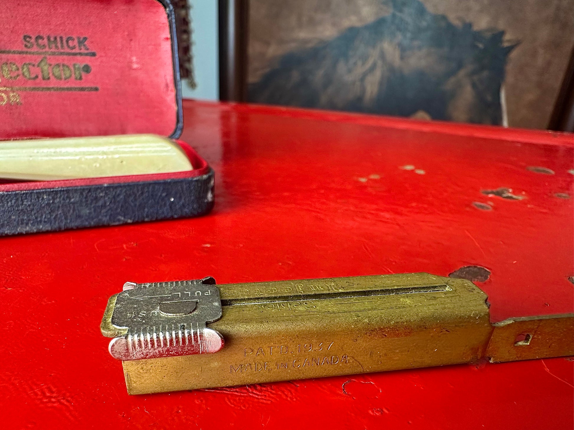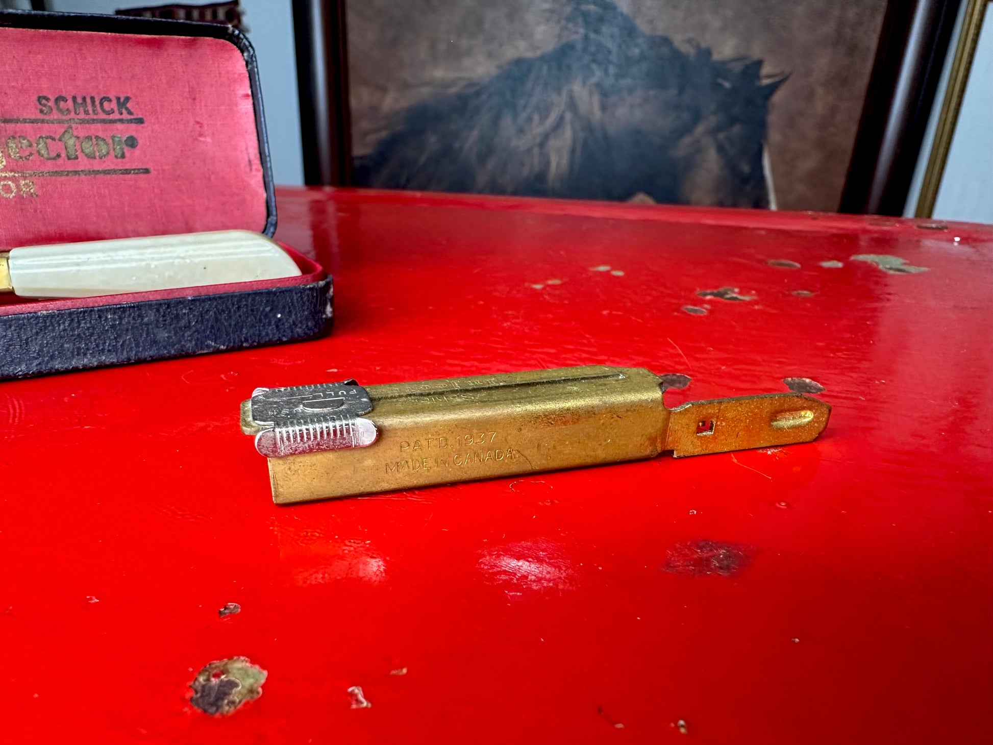 we have here a vintage Schick Injector Razor in its original case, razor is patent 1937.